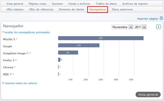 En navegadores puede ver una vista general de los programas que se han utilizado para acceder a tu página web.