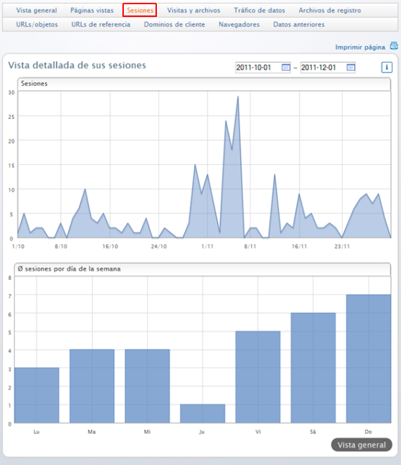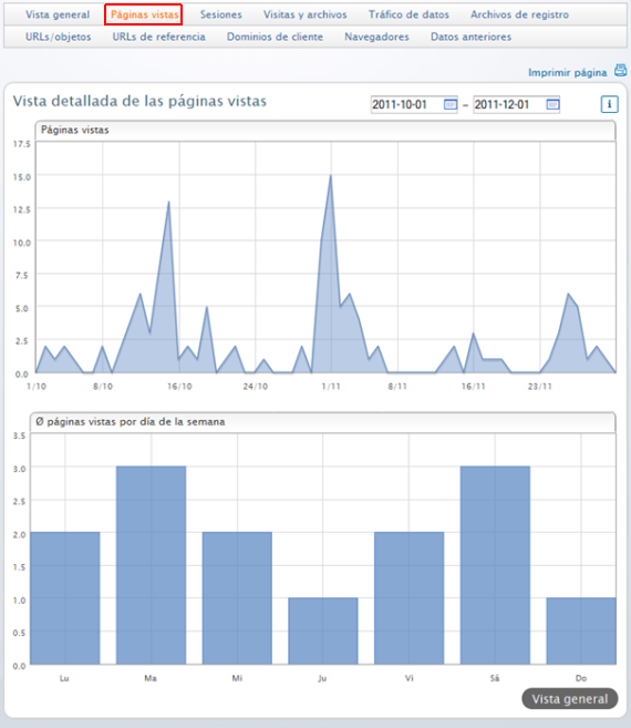 Páginas vistas te describe las cargas de páginas reales. Cada página que solicites se contará. Este apartado te muestra el grado de utilización de tu página.