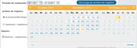 Mediante el calendario mostrado arriba a la derecha puedes seleccionar un periodo y mostrar las estadísticas para dicho periodo.