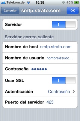 En la configuración estándar se configuran los buzones de correo electrónico en el iPhone con una conexión cifrada SSL. En caso de que en tu configuración no se haya puesto por defecto o si quieres modificarlo más adelante, sigue las siguiente instrucciones.