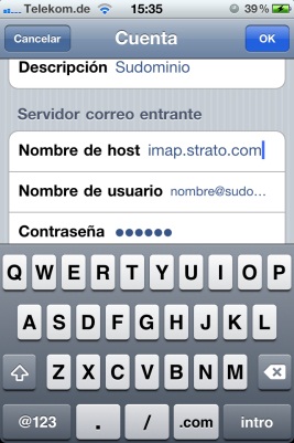Nombre del host: Indica aquí el nombre del servidor de correo de STRATO.