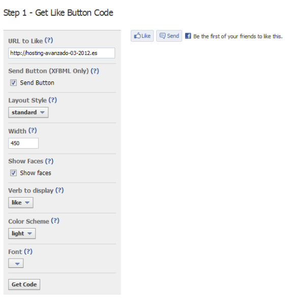 Debajo de Step 1 - Get Like Button Code especifique los datos que se le solicitan: