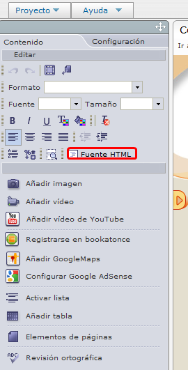 En el menú de la izquierda, por favor, haga clic en el botón Fuente HTML
