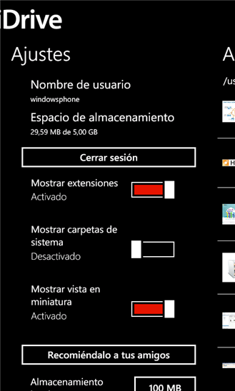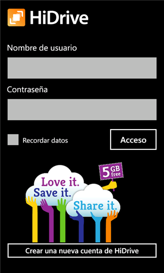 Aplicación de HiDrive para Windows Phone 7