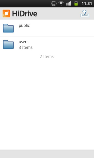 Una vez hayas accedido, podrás visualizar las carpetas public y users de tu cuenta de HiDrive.