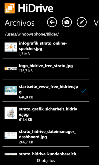 Con la nueva aplicación de HiDrive para WindowsPhone 7 podrás utilizar tu disco duro online también desde tu dispositivo móvil. La aplicación de HiDrive te ofrece la posibilidad de reproducir distintos tipos de archivo.
