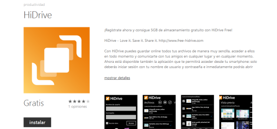 Encontrarás la aplicación en el Windows Marketplace con la palabra clave HiDrive.