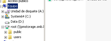 Al abrir el explorador de Windows aparecerá tu cuenta de HiDrive en el entorno de redes con las carpetas “public” y “users”.