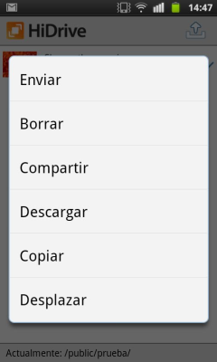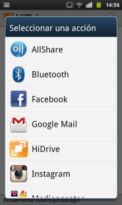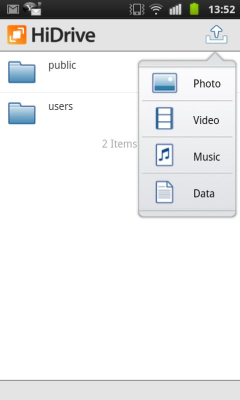 La app le permite utilizar cómodamente su cuenta de HiDrive desde su smartphone Android. Visualice directamente sus contenidos y envíelos por e-mail a sus amigos o compañeros.