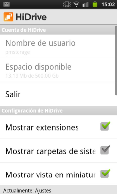 Si tiene muchas imágenes en su directorio de HiDrive le recomendamos desactivar la vista previa de imágenes, ya que reduce la velocidad. Esta opción se encuentra en Ajustes y Mostrar vista en miniatura.