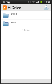Al acceder se encontrará en el nivel superior de los directorios de su cuenta de HiDrive. Podrá visualizar las carpetas "public" y "users". Navegue por las carpetas hasta acceder a la carpeta/archivo que desee.