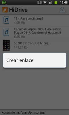 Con la aplicación de HiDrive podrá visualizar en stream los archivos de audio y de vídeo que soporte su hardware. Así no tendrá que descargar el archivo entero. Pulse una sola vez en el archivo de audio o de vídeo y aparecerá la opción Descargar o Streaming. Si lo mantiene pulsado podrá elegir entre enviar el archivo como adjunto por e-mail o por bluetooth.
