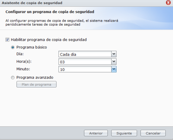 Con ayuda del backup programado puedes indicar cuándo quieres que se realice la copia de seguridad. Si tienes la opción Continuar carga tras la desconexión activada, se podrá recuperar una copia incompleta sin pérdida alguna tras la interrupción inesperada de la conexión ADSL.