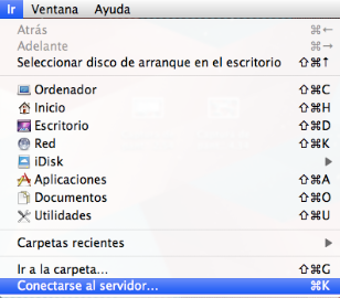 Ahora puedes añadir la unidad de red real. Para ello, accede desde el escritorio de tu ordenador Ir a al punto del menú Conectar con el servidor … o directamente con la combinación de teclas Tecla de comandos + K (o también tecla Apple/ ? + K)