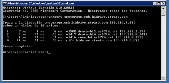 Proceda así: Inicio Ejecutar cmd tracert sunombredeusuario.smb.hidrive.strato.com