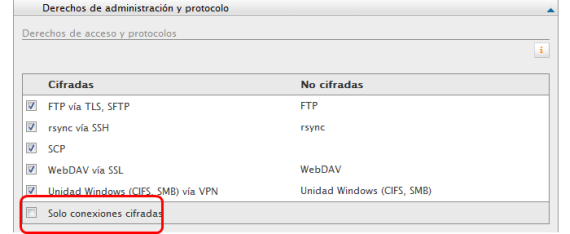 Elija esta opción si quiere permitir conexiones no seguras a HiDrive. Recuerde que tiene que permitir las conexiones no seguras en su panel de usuario.