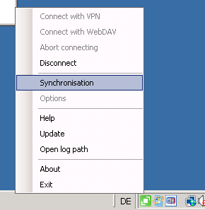 También puede sincronizar grandes archivos con el software, ya que la carga se puede reanudar tras una pérdida o interrupción de la conexión. Una vez conectado, haga clic con el botón derecho del ratón en el icono de HiDrive y elija la opción Sincronización.