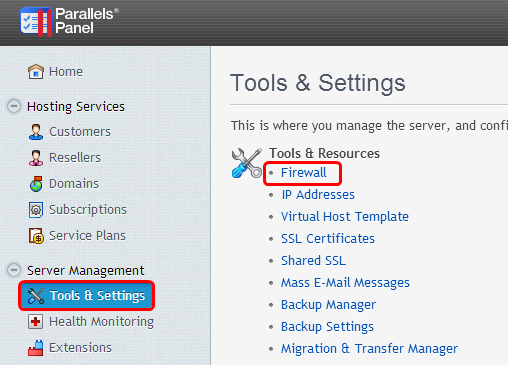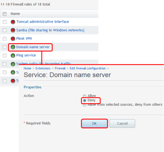 Haz click en Editar configuración de Firewall y elige a continuación el Servidor de nombre de dominio.